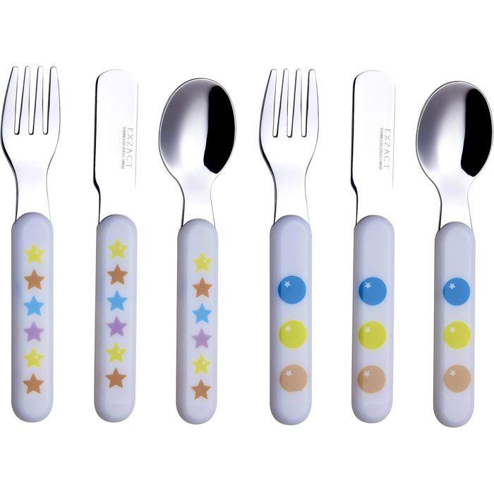 Couverts pour enfants - exzact - 6 pièces - inox 18/10 - poignées en plastique - motifs étoiles et points