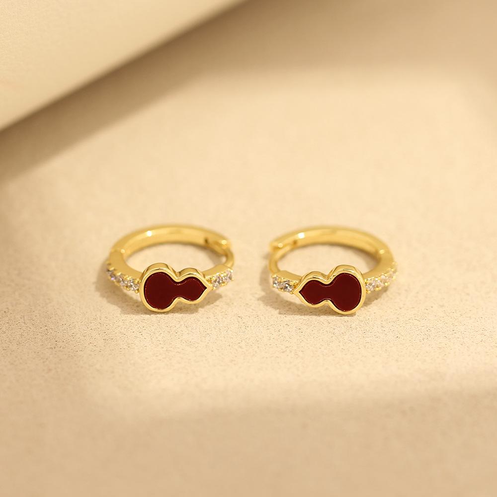 New Chinese style red gourd gold electroplated small ear buckle temperament versatile diamond set small earrings women's stud earrings