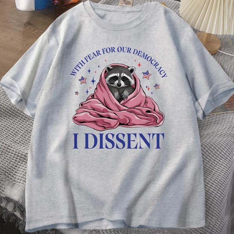 With Fear for Our Democracy I Dissent Tshirts Raccoon Meme Personalized Cotton Short Sleeve Tshirts Project 2026 Fashion Tops
