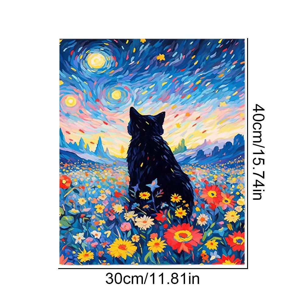 Starry Sky Cat DIY Digital Oil Painting Handmade Coloring Decoration Painting Kit Flower Cat Hand Drawn Landscape Oil Painting