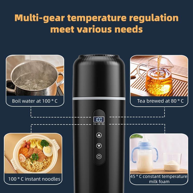 Designed for versatility, this boiling water cup operates on both 12V and 24V DC power sources, ensuring wide compatibility with various vehicles.