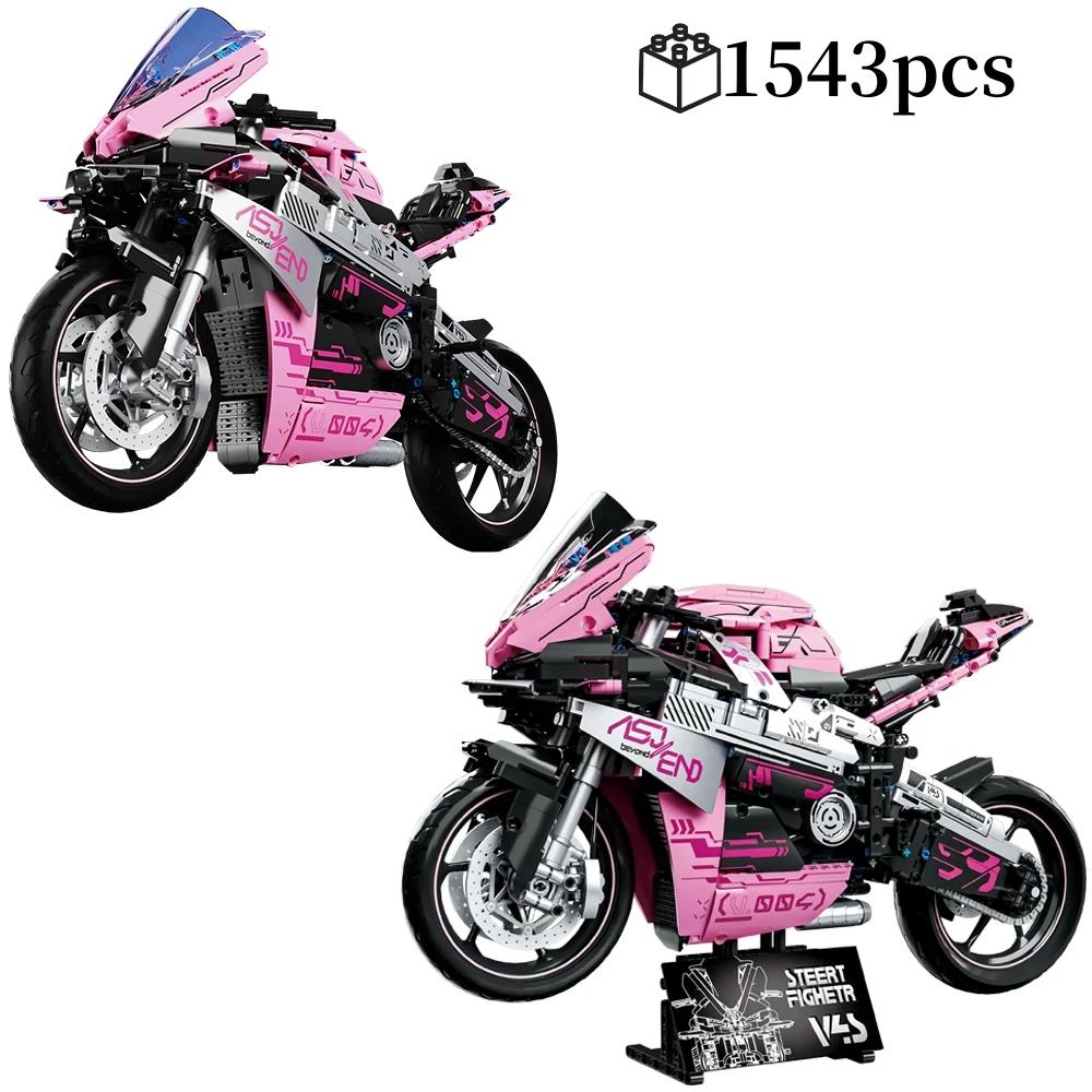 Educational Road Motorcycle M1000 RR Model 42130 Building Blocks Creative Technical MOC Assembly Bricks Pink Desktop Gift Idea