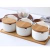 Jars Set Wood Lid Bamboo Tray Seasoning Jar With Spoons Kitchen Sugar Salt Spices Storage Container Seasoning Jar Ceramic Spice