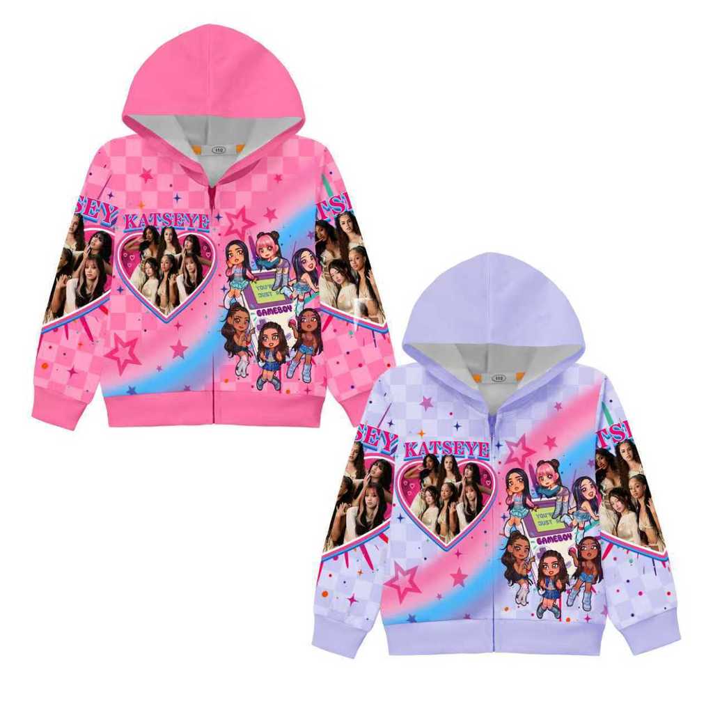 36374 Kids Girls KATSEYE Printed Long Sleeves Hooded Zipper Coat Jacket