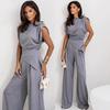 2026 Sexy Lapel Single-breasted Shirt Top + Wide-leg Pants 2-piece Set Women Fashion Solid Color Elegant Casual Hollow Suit Female