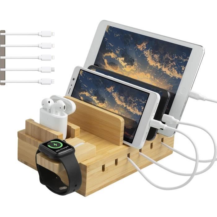 Station de charge - generic - techdot - 5 ports usb - bambou naturel - charge rapide intelligente