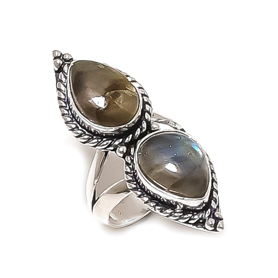 Natural Labradorite Gemstone 925 Sterling Silver Jewelry Ring Size 8 ETC-13968