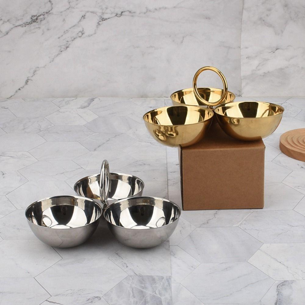 304 Stainless Steel Snack Bowl Round Bowl Circle Ring Handle Fruit Plate Rust-proof Multi-functional Appetizer Platter