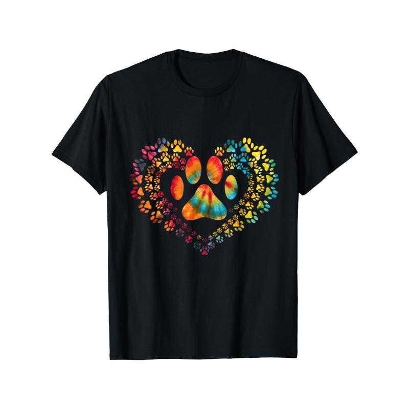 European sizes Tie Dye Love Dog Paw Print Heart Animal Lover T-Shirt