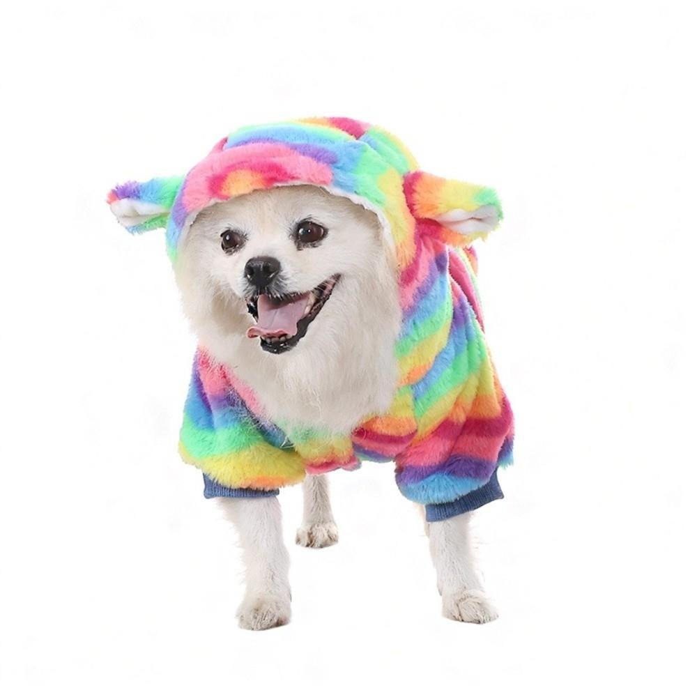 Pet Costume Thick Pet Dog Hoodie Fleece Rainbow Dog Sweatshirt Warm Soft Pet Coat Jacket Winter Autumn