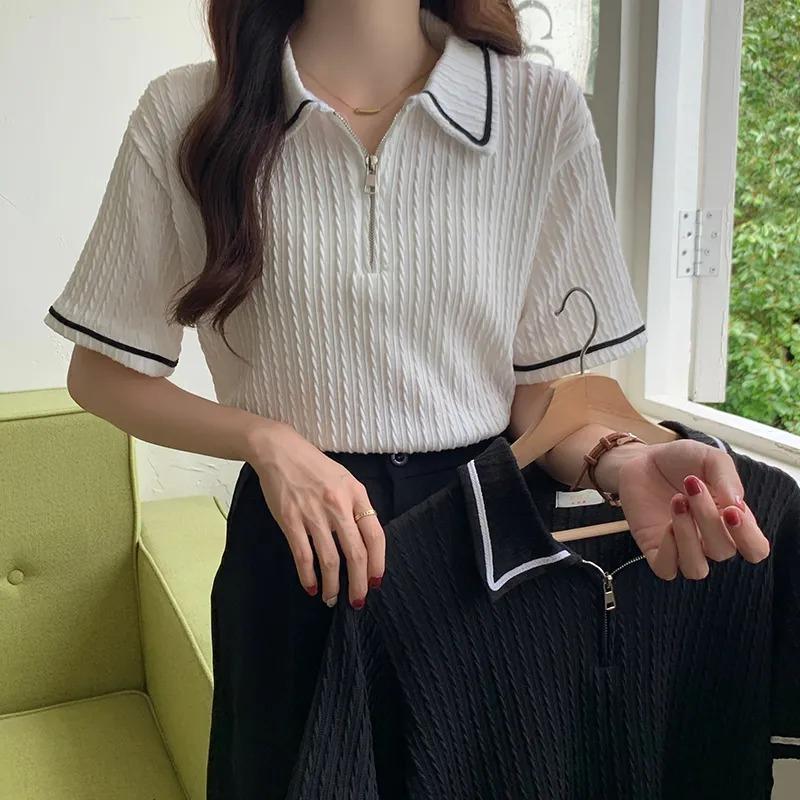 Lapel Shirt Short-sleeved T-shirt for Women Summer New Loose College Style Student Versatile Bestie Outfit