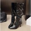 New Over-the-knee Boots Women Fashion Pointed Toe Black Side Zipper Thin High Heels Female Shiny Pleated High Heel Botas