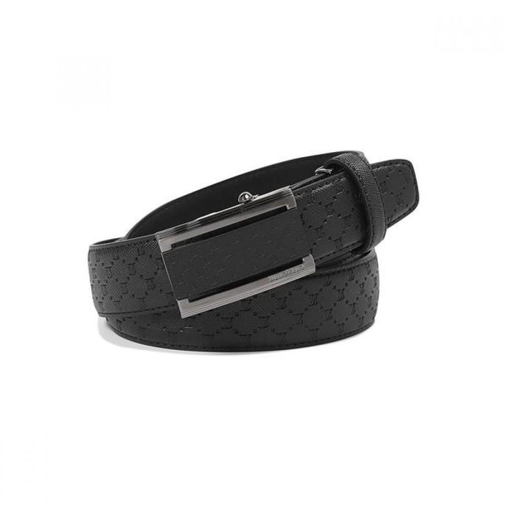 2026 SS Cowhide Black Satin Logo Plate Men's Automatic Belt features a luxurious black color and a square-shaped logo buckle. The automatic fastening method allows for easy wearing and fit adjustment, making it perfect for both gift-giving and daily wear. The front is made from high-quality cowhide, providing an excellent tactile feel, while the back features synthetic leather suitable for automatic buckles, enhancing convenience.
