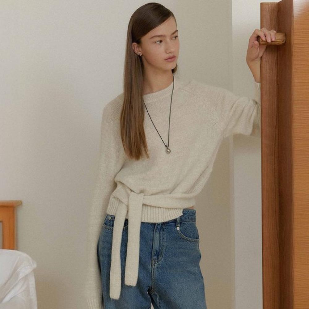 The ON&ON Tie Strap Pullover NEK5WPA49 is a women's knit top characterized by its strap detail. With a round neck design, it easily matches various styles and offers a comfortable wearing experience.