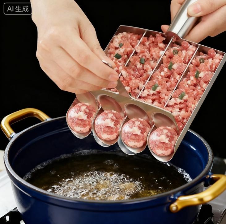 סט להכנת קציצות Non-Stick לשחרור קל - כפית קציצות ידנית לכדורי דגים ללא מאמץ - כלי מטבח אידיאלי לבישול ביתי