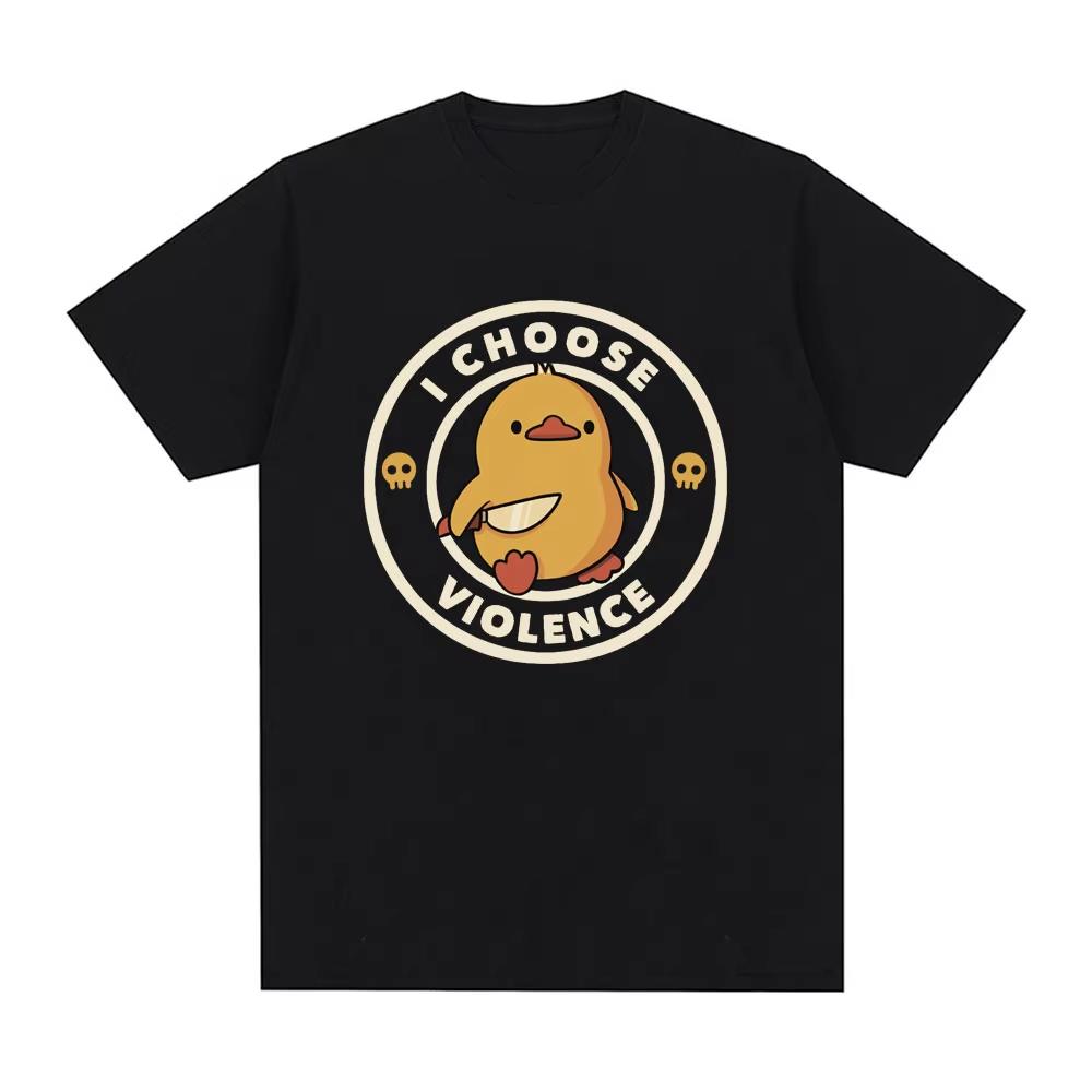 I Choose Violence T Shirt Funny Duck Humor Slogan Print Short Sleeve Tshirts Men Women Cotton Loose Oversized Tshirt Cotton