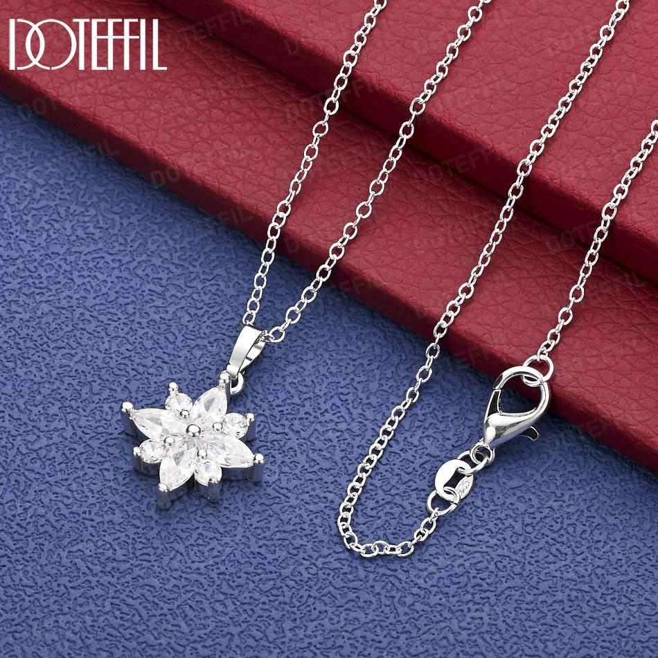 925 Sterling Silver Fashion Jewelry Snowflake AAA Zircon Pendant Necklace