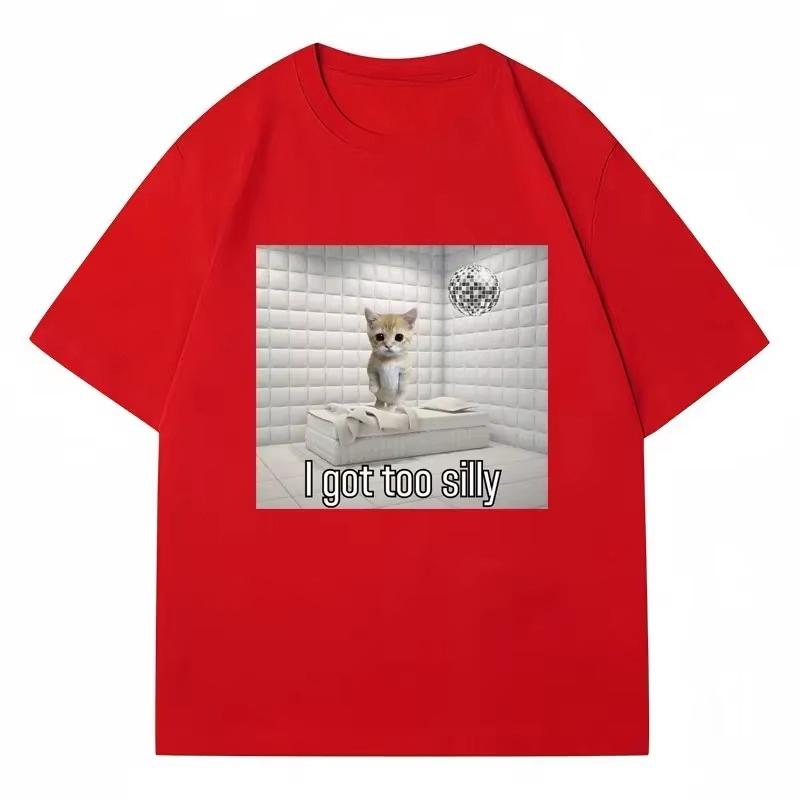 I Got Too Silly Funny Sad Crying Cat Model T-shirt Women's Short-sleeved T-shirt Casual and Comfortable Couple Street Wear