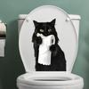 Playful Black Cat Holding Toilet Paper Toilet Seat Sticker Bathroom Decor Self-Adhesive Removable Decal