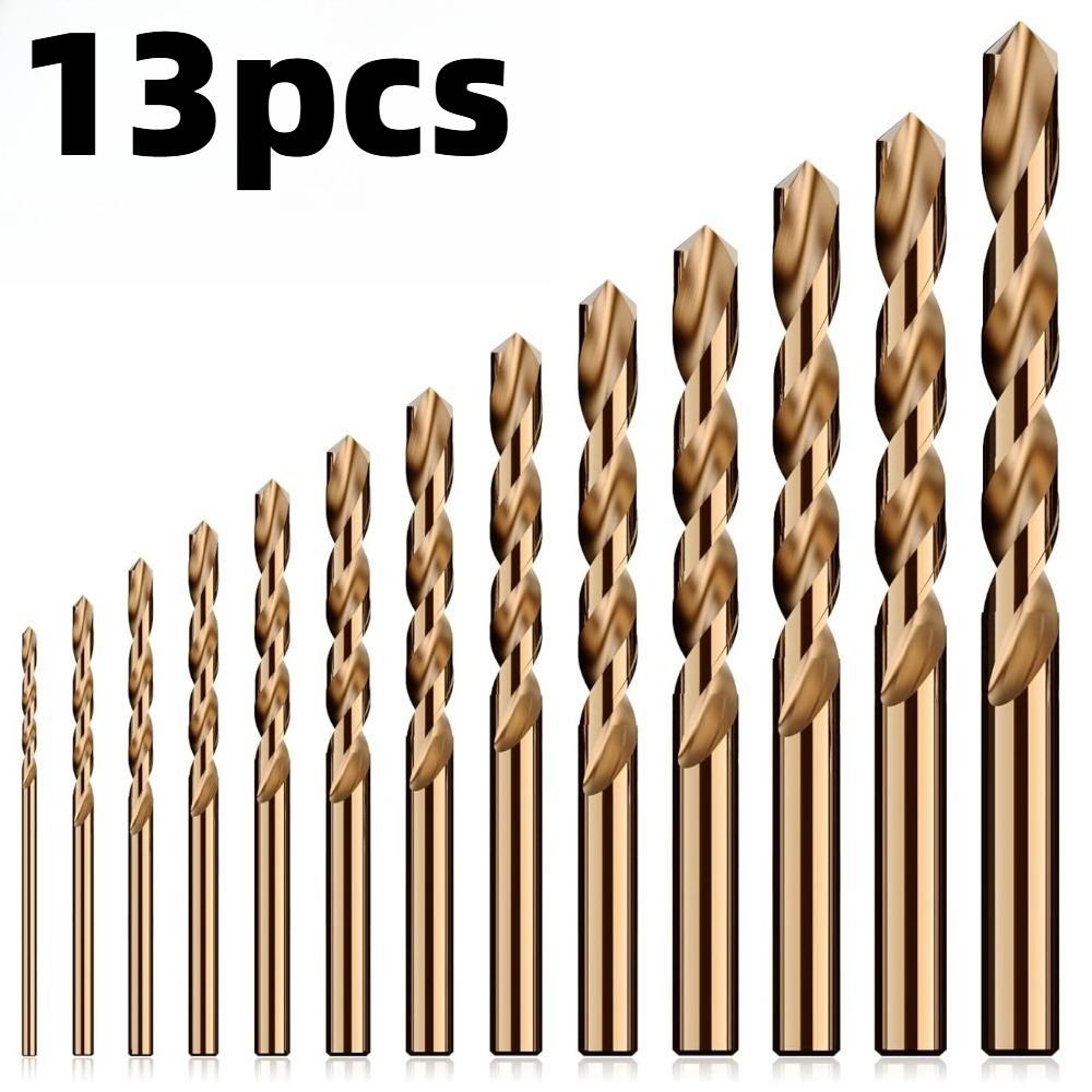 Set of 13 Cobalt Drill Bits Made from M35 High-Speed Steel, Featuring High Durability And Precision Markings, Suitable for Stainless Steel, Cast Iron