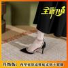 Sexy royal sister wind rivet high heels pointed one-word buckle strap stiletto personalized discount sandals