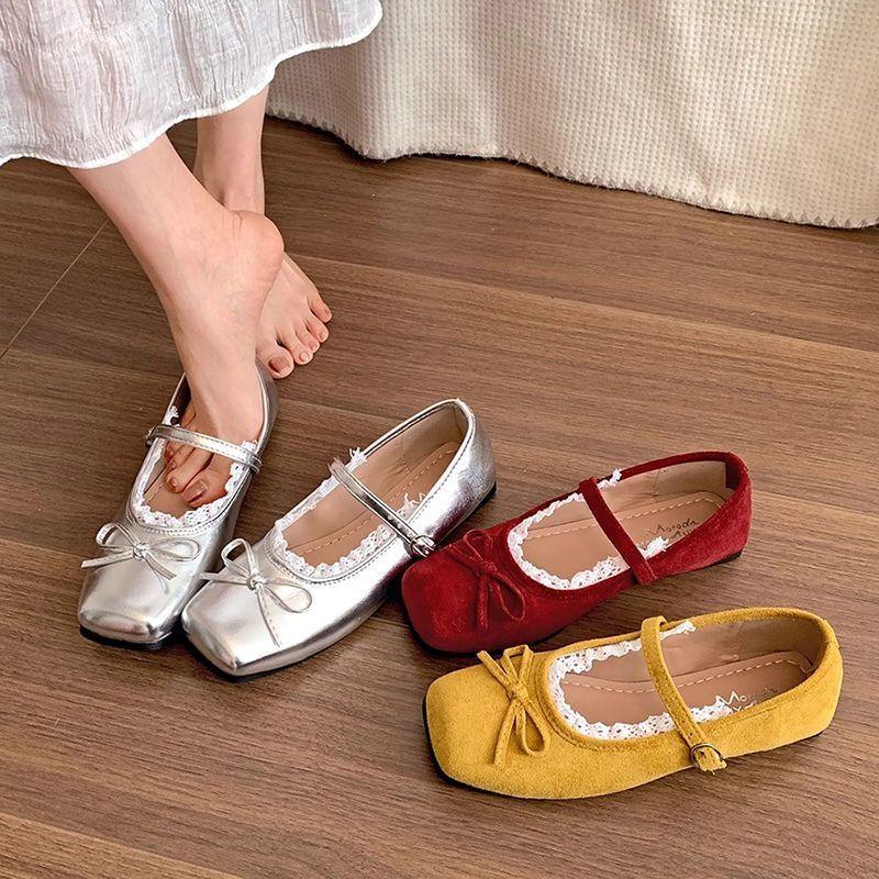 With skirt versatile soft sole comfortable ballet shoes summer Japanese fairy style bow Mary Jane single shoes
