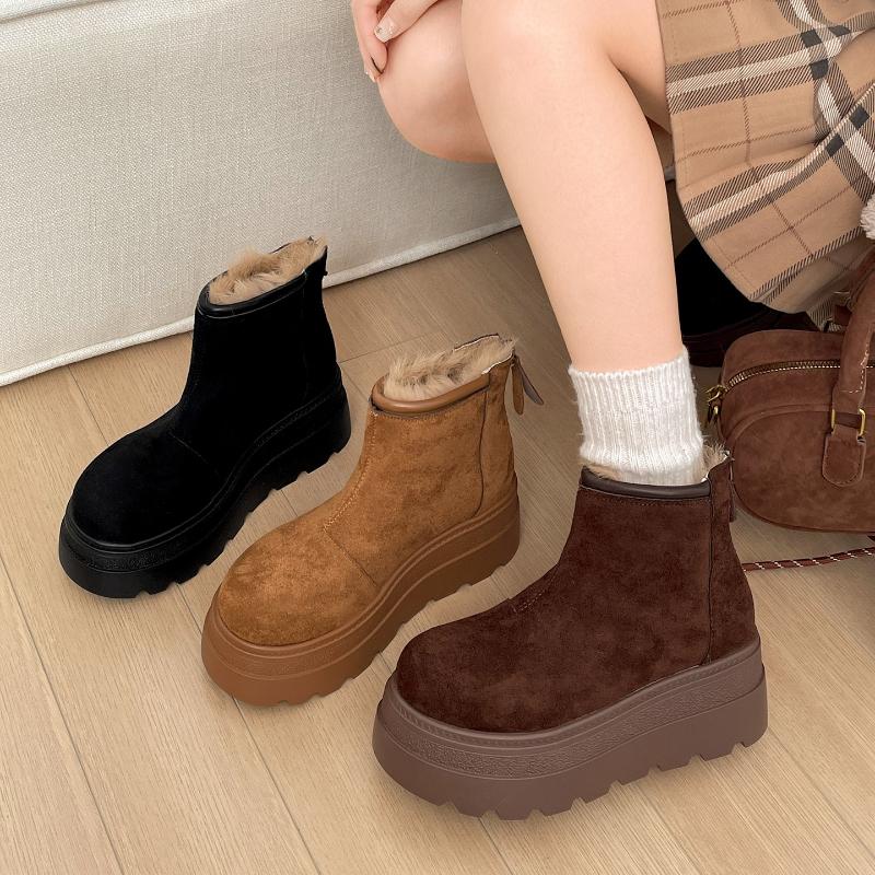 Vintage Fur Lining Women Snow Boots Comfort Platform Thick Sole Keep Warm Cotton Short Booties Winter Women's Plush Shoes
