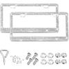 2PCS Bling Car License Plate Frame, Stainless Steel Rhinestone Vehicle License Plate Cover with Screws Caps, Sparkly Automotive Decoration