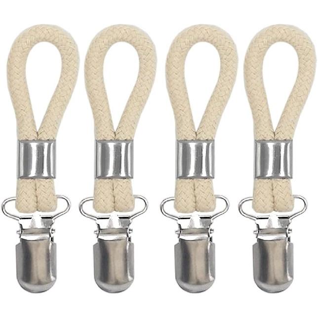 Tea Towel Clips for Hanging with Loop Cotton Metal Cloth Hook Clip Hangers for Home Storage Kitchen Towel Hooks Holder Beige-Set of 4 (4)