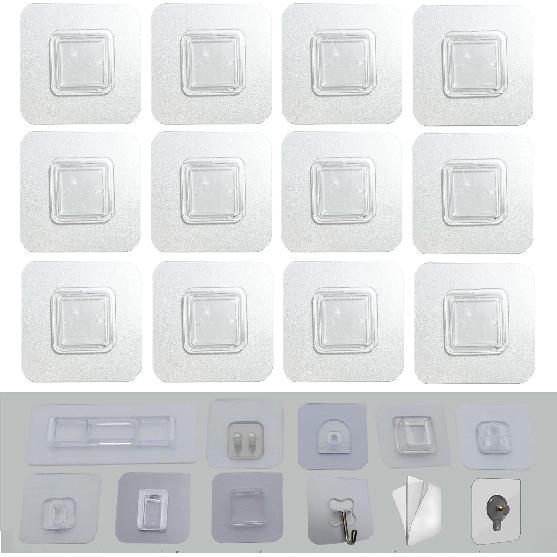 12 PCS Wall Mounted Replacement Sticky pads for Kitchen Bathroom Shower Caddy Organizer Rack Holder Nail Free Adhesive Hooks (Square)
