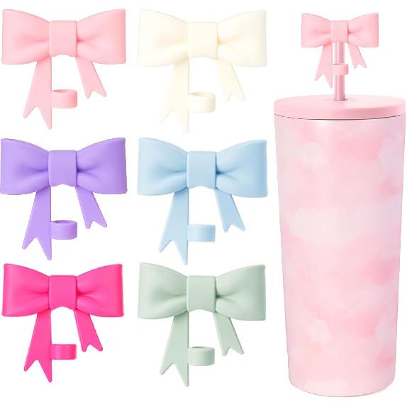 6 Pcs 8mm Cute Bow Straw Covers Cap Toppers Lids Compatible with Stanley Tumbler Cups,Reble Cute Silicone StrawTips Protectors for Reble
