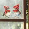 Christams 3 Birds in Red Santa Hat Window Clings, Xmas Theme Flower Birds Design Glasses Decorations, 11.8 * 10.6Inches Size Chritsmas Window