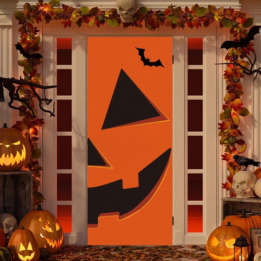 IMISHM Halloween Pumpkin Door Covers Halloween Door Decorations Halloween Door Banner Halloween Decorations for Front Door Halloween Porch Sign for