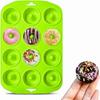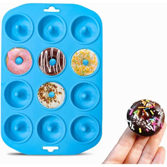 Donut pans Bite Size: 11.1 x 7.4 x 1 inches, the diameter of each holes is about 2 inches, total in 12 cavities, mini donut silicone mold great for make all kinds of tasty donuts as well as bagels to share with your family or friends.