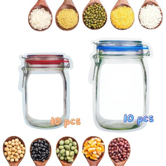These mason jar zipper bags can store and display candies, cookies, and nuts, making them great for storing food during kitchen, travel, and camping. They can also be placed on tabletops, in refrigerators, or cabinets, saving space and keeping things tidy