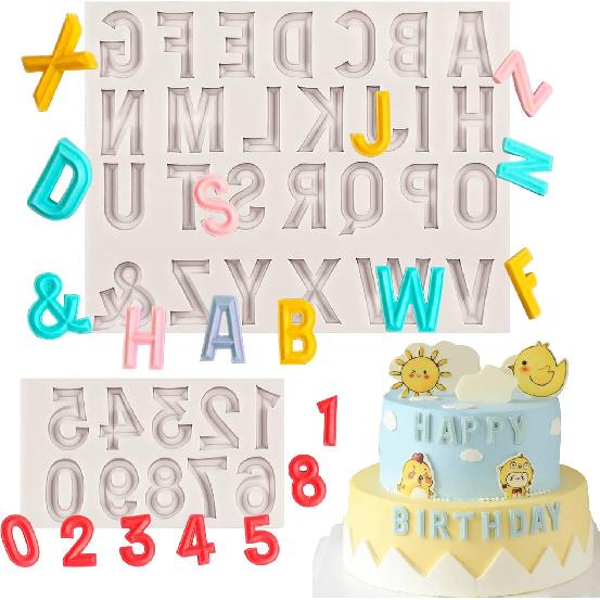 26 Capital Letter Fondant Molds, Alphabet Number 0-9 Chocolate Cake Decorating Silicone Mold 2pcs Birthday Party Anniversary Valentine's Day Candy