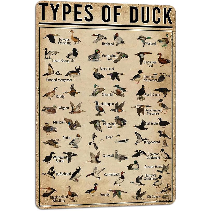 PAIION Duck Knowledge Metal Poster Type Of Duck Metal Tin Sign School Club Hunting Lodge Cafe Bedroom Bathroom Kitchen Home Art Wall Decoration 8x12
