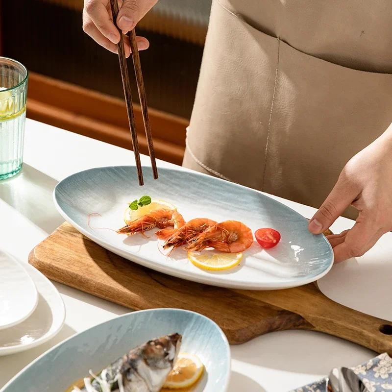 10-14 inch Ceramic Fish Plate Oval Serving Plates Trays and Platters Oven Safe Porcelain Dinner Tray Serving Dishes for Meat