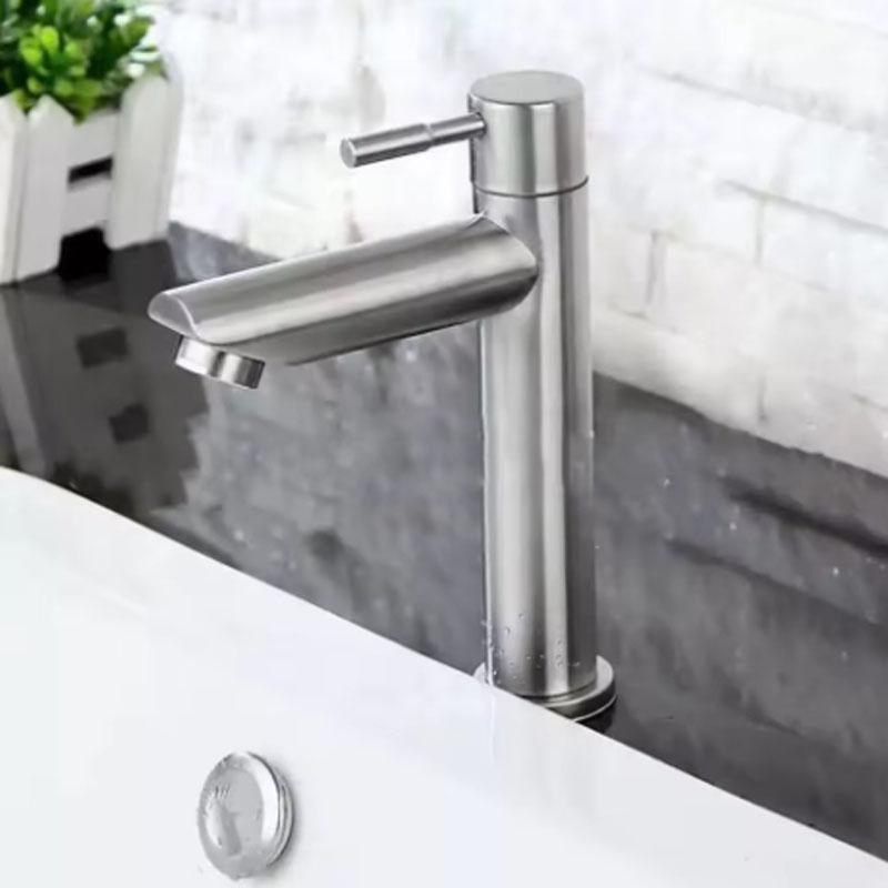 Stainless Steel Water Tap Single Cold Black Basin Fauct Silver Deck Mounted Lengthening and Raising Basin Sink Tap