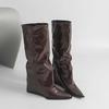 Winter Pointed Toe Women Knee High Boots Concise Slip On Wedges Heel Shoes Street Style Banquet Party Pipe Long Botas Mujer