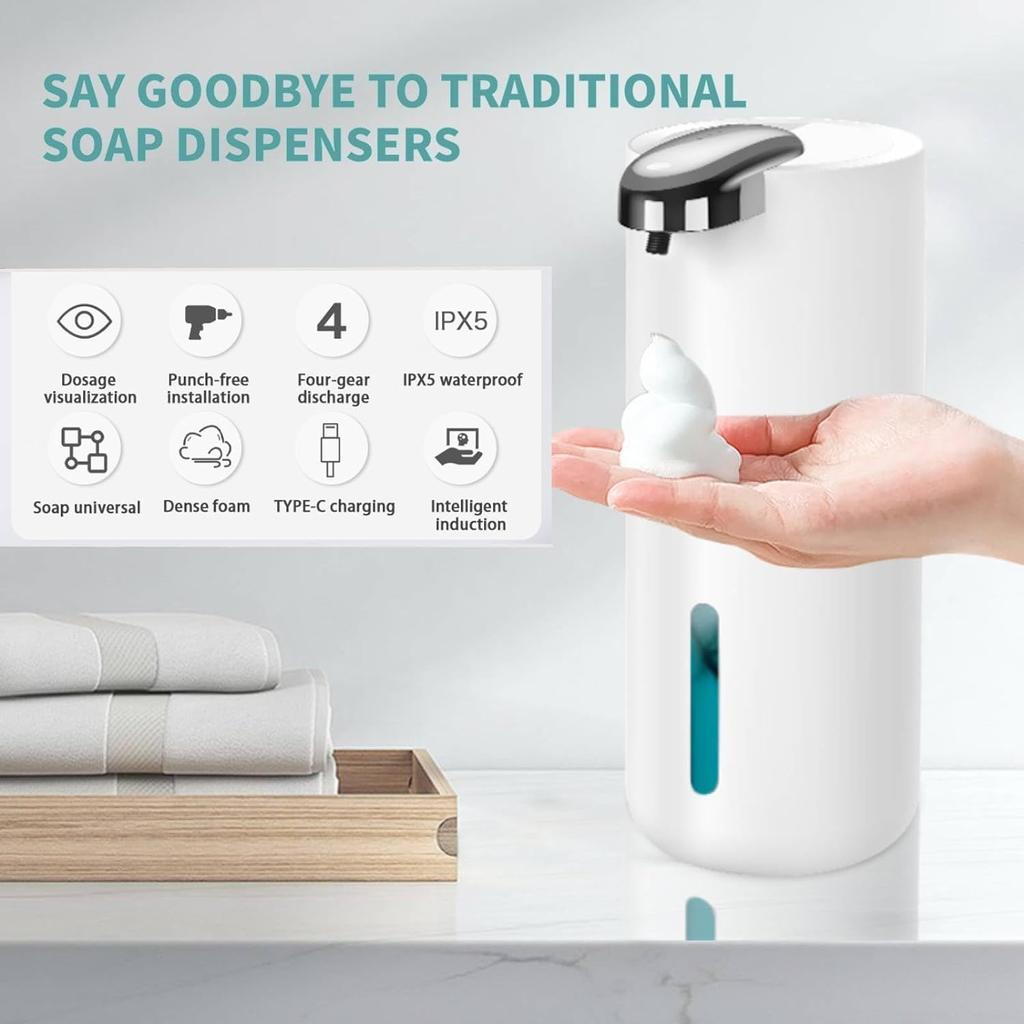 380ml Automatic Soap Dispenser 13.5 oz Touchless Foam Soap Dispenser USB Rechargeable 4 Speed Electric Sanitizer Dispenser Set