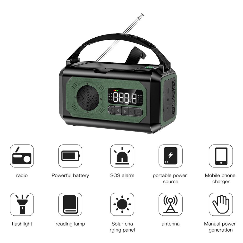 Solar Weather Radio 16000mAh-12000mAh Flashlight Hand Crank Emergency Radio Reading Lamp Built-In Speaker for Outdoor Survival