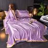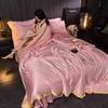 Luxury Ice Silk Summer Blanket 4/3/1 Pcs Embroidery Silky Cool Feel Quilt Set or 1 Quilts Breathable Air Conditioning Comforter