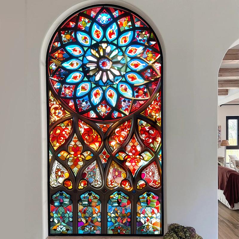 סרט ויטראז' צבעוני לכנסייה בסגנון אירופאי, מדבקת זכוכית וינטג', עיצוב לדלת בית, חדר אמבטיה, סרטי חלון לפרטיות