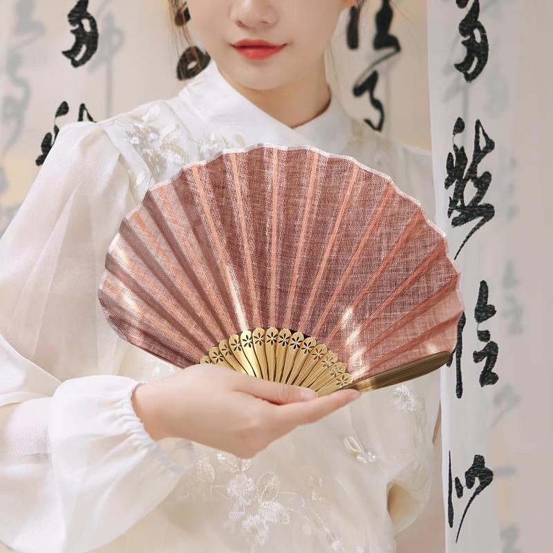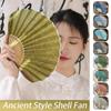 Japanese Style Shell Shape Fan Cotton Linen Literary Art Retro Folding Bamboo Fan Chic Chinese Hanfu Wedding Dance Decor Props