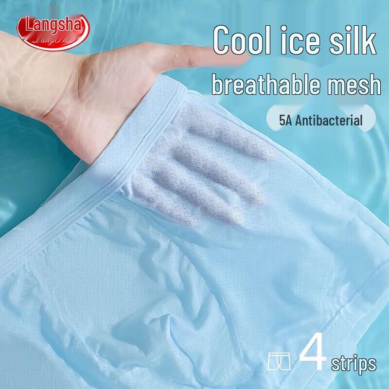 LANSWE Boys' 5A Antibacterial Summer Ice Silk Mesh Boxer Briefs (4-Pack)