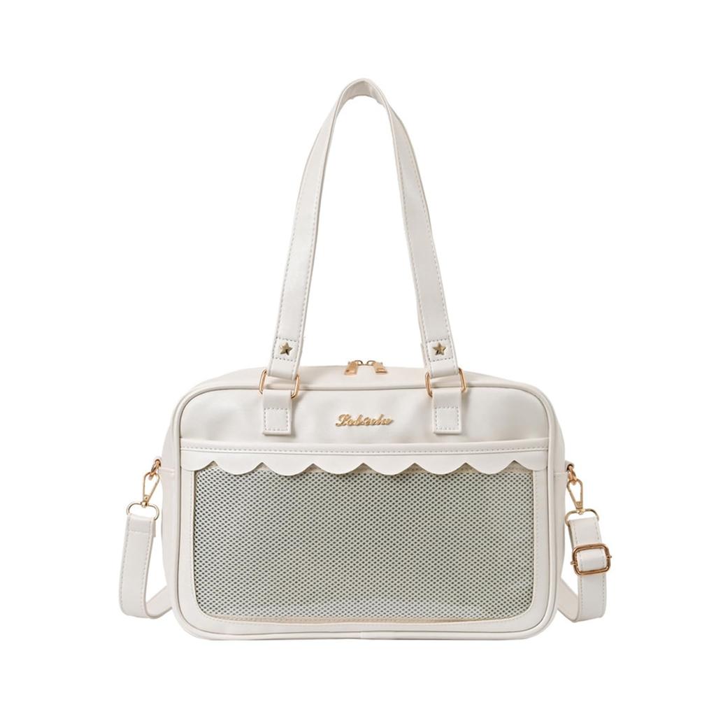 Manatsulife Ita Bag, School Bag, Tote Bag, Women's, 2-Way, Decorated, Clear, JK Uniform, A4 Size, Large Capacity, TB01 (White)