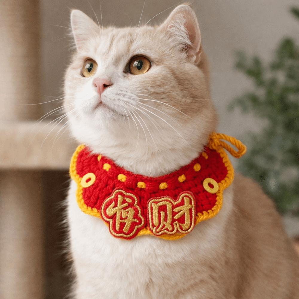 Festive Gifts Cartoon Chinese Style Pet Scarf Handmade Red Cat Knitted Scarf Funny Adjustable New Year Dog Costume Pet Costume