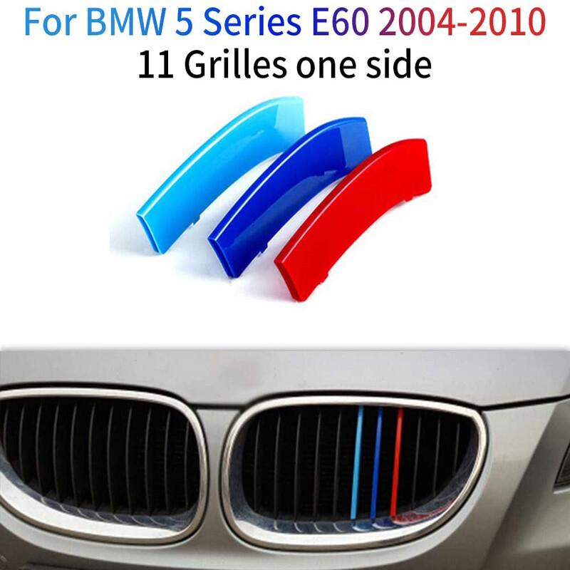 11 Slats Front Grille Cover Strips Clip Trim For BMW 5 Series E60 E61 2004-2010
