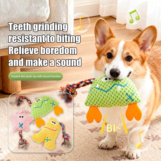 Corduroy Dog Chew Toy Squeaky Plush Toy with Colorful Rope Chew Resistant Self-Entertainment Toy Dogs Tug Toy for Small